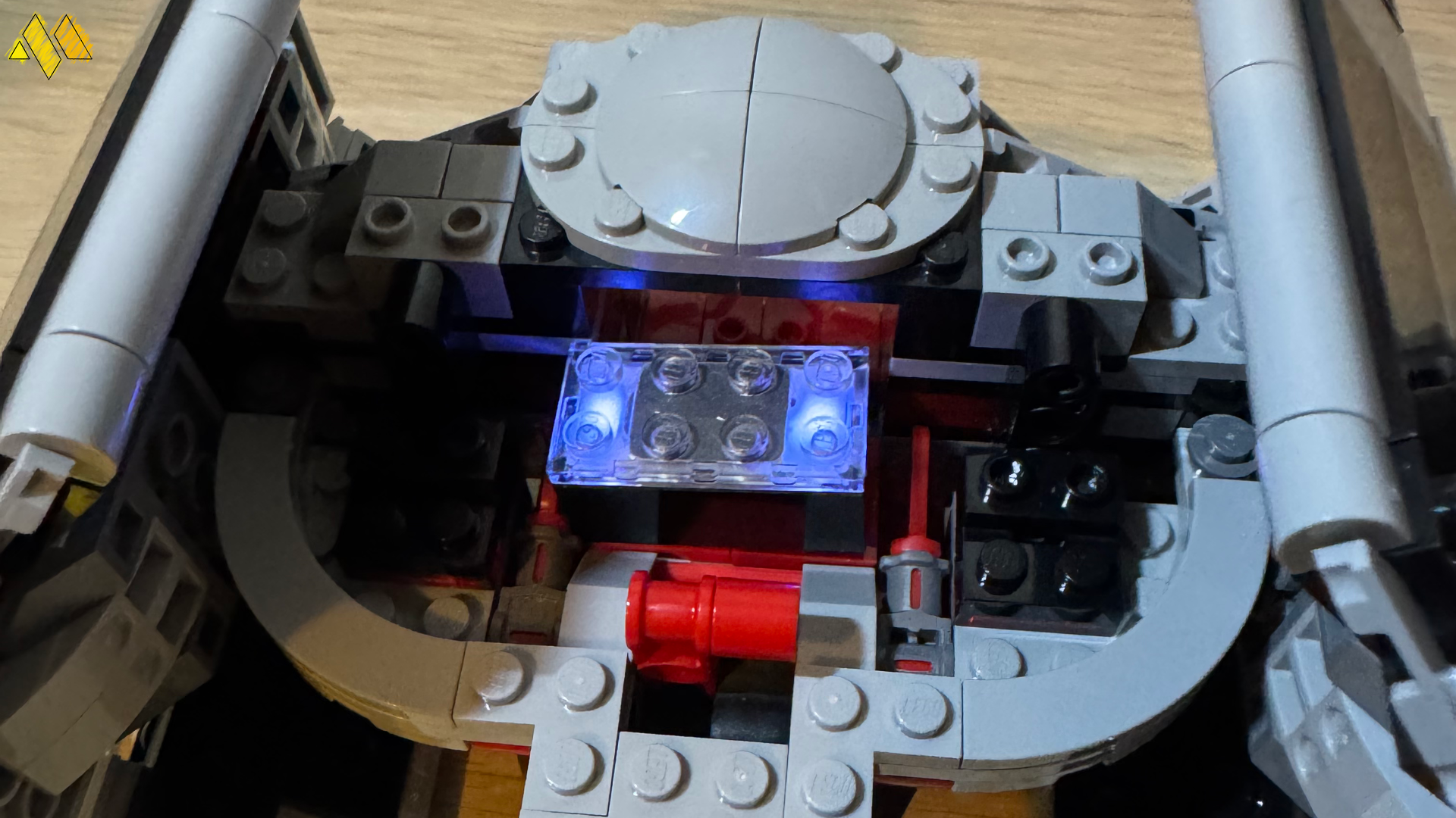 That was actually the second set that I built, the first set was Darth Vader's Tie Fighter, because it came with a Smart Brick. The first thing I noticed when building this, was that the legs and torso of the Smart Minifigure of Darth Vader were together and I just assumed it was a fluke, but it turns how they are all that way. I actually had another Darth Vader minifigure on my shelf, so I did compare the two and apart from the back of the Smart minifigure having the icon to indicate that, there was no differences, at least externally. Darth Vader aside, I was very keen to see how the Tie Fighter would be once it was built, and turns out it is quite a bit different. Both the Tie Fighter and the X-Wing I built after it have the same design change, they are more toy like. Both sets have a lever you can pull, which then interact with the colour sensor on the Smart Brick, but their general look is different. For the Tie Fighter, this means that the ship is not enclosed fully, which sure does not make it great for space flight, but it does make it perfect for play. The lack of a fully enclosed main unit means you can drop in or take out the Smart Brick, without needing to break apart the model, something I am sure many kids would be happy with.
