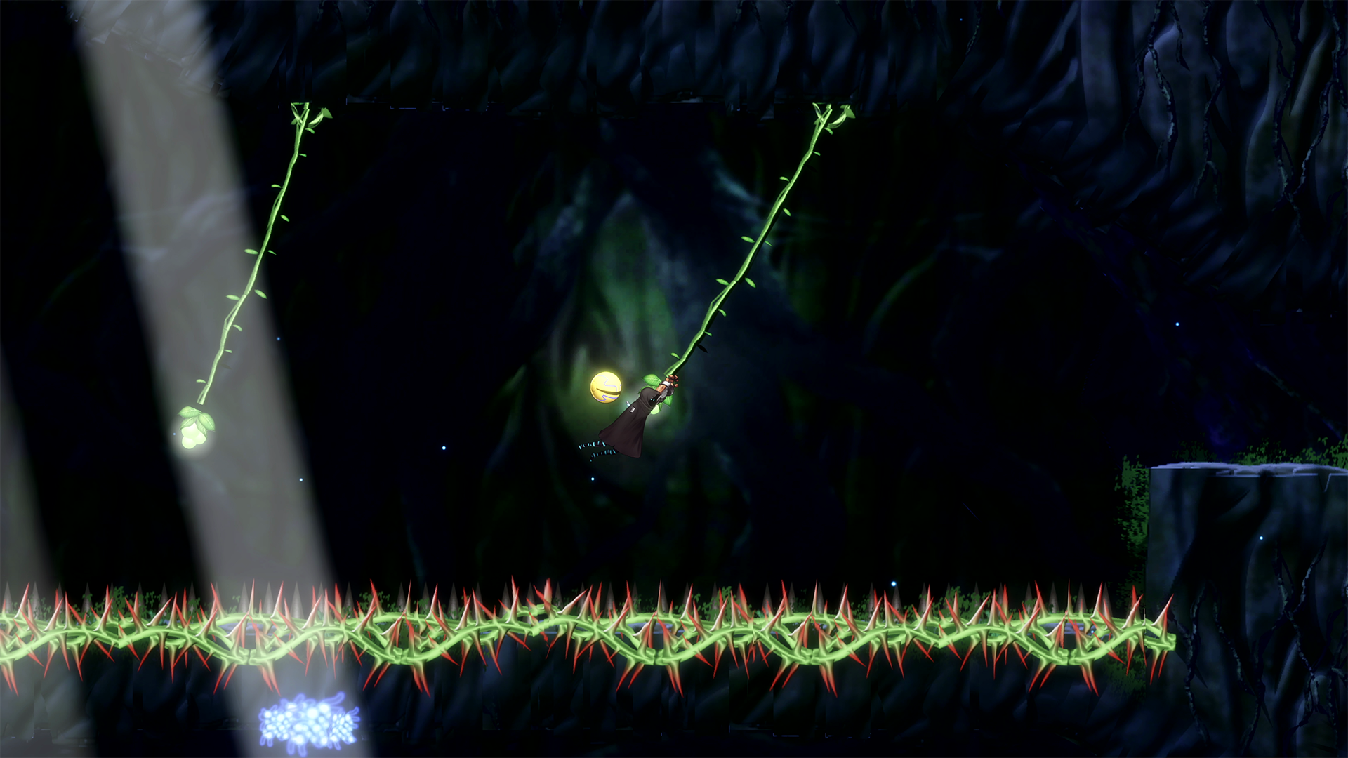 What I liked about all the above is that when you get into the groove you can truly make some epic moves. Dodging enemies and being able to fling yourself across the stage while doing so and avoiding other elemental hazards, it made me feel powerful. Where I felt less powerful however, was with the games health system, it is just a pain. So, much like a Metroid game, you obtain energy boosts, which give you more energy to restore your health and that last part is important. In any Metroid game, if you have 3 health canisters, you get three full energy bars, once the first is emptied it refills and you are on your next one. Here you have to manually do that, no matter where you are, if you’re on your last segment of health, the game does not automatically fill your health back up. Triggering the recharge is easy, you just pull the Right trigger in, but that takes time and while you are doing so, you are open to being attacked, which interrupts your recharge and if your health is low, will kill you. There might be a Perk that unlocks an auto-recharge, as there are a few that I did not find, that is entirely possible, but even still that should not be an option. The game is challenging enough on its own, and I do like that challenge, but I just wish the health worked a little more like the Metroid series.